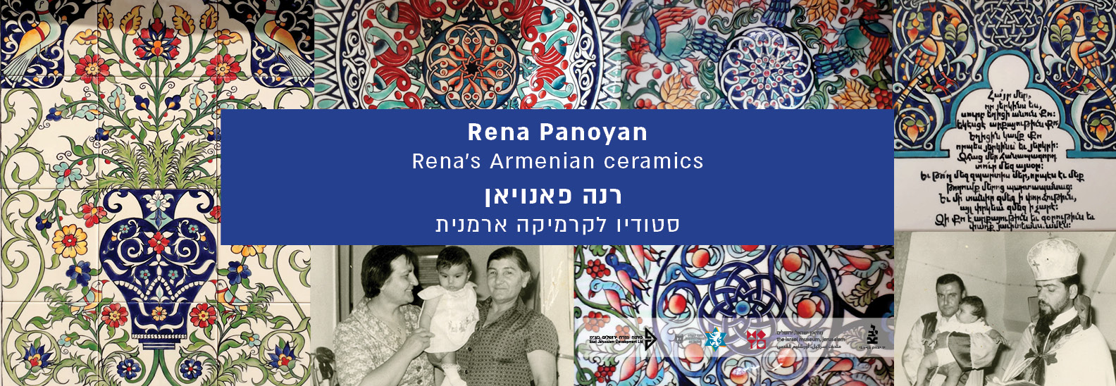 Rena Panoyan is a first-generation ceramic artist. Her family arrived in Jaffa after the Armenian genocide at the beginning of the 20th century, and Rena grew up in the compound of the Armenian Church in Jaffa. Rena's mother was a seamstress and Rena followed in her footsteps, learning fashion design in high school and turning her hand afterwards to sewing and embroidery. A visit to George Sandrouni's studio in Jerusalem opened the door to a new world for her, and through Armenian ceramics, she became further acquainted with her national identity. She deepened her knowledge of traditional Armenian designs and found her unique voice in the development of a new style combining the old with the new. Rena's Armenican Ceramics Studio is located in her husband's family home in Haifa.