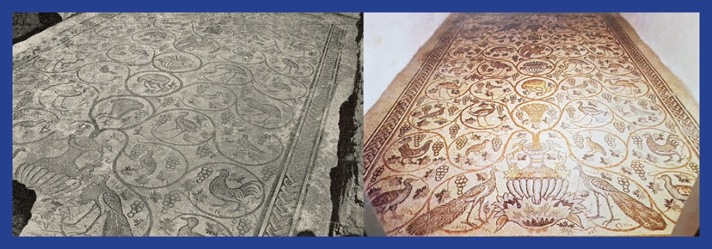 Right: The Birds Mosaic From Chava Joffe Album, Preserver of the mosaic in the 1970s, Israel Revealed to the Eye, Yad Ben Zvi