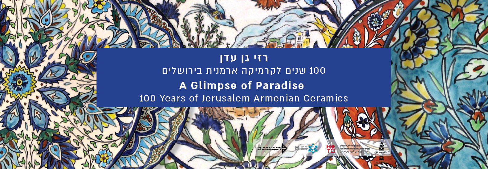 The Armenian Ceramic artists, on arrival in the Holy City as refugees in the the twentieth century after the genocide of their people during the First World War, got to know of the ancient mosaic. symbols that represent expressions of sacrifice and redemption in early Christianity. They saw in it a powerful and significant expression of their personal and national tragedy, and their religious and national aspirations. The Armenian inscription at the top of the mosaic: "For Memory and Salvation – of all the Armenians Whose Names the Lord Knows"marking the tortured saints of the Armenian Church at the beginning of Christianity that was felt as a thrust of a sword in their hearts, and sparked their feelings when they came to establish anew their lives in Jerusalem.